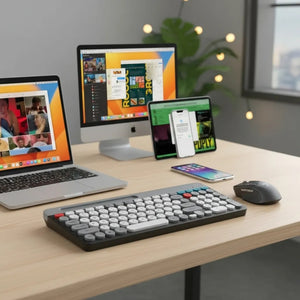 El Combo Teclado y Mouse Inalambrico Multidispositivo es la solución ideal para quienes buscan comodidad y versatilidad en su espacio de trabajo.