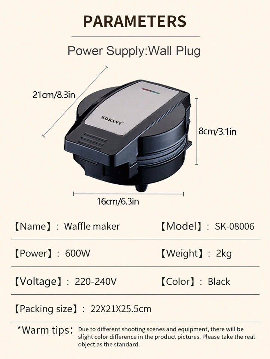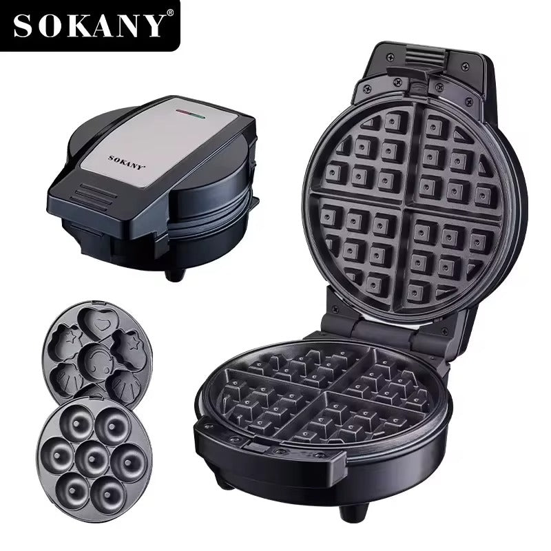 Waflera Sokany 3 en 1 – Hace Waffles, Donas y Pastelillos Antiadherente 600W